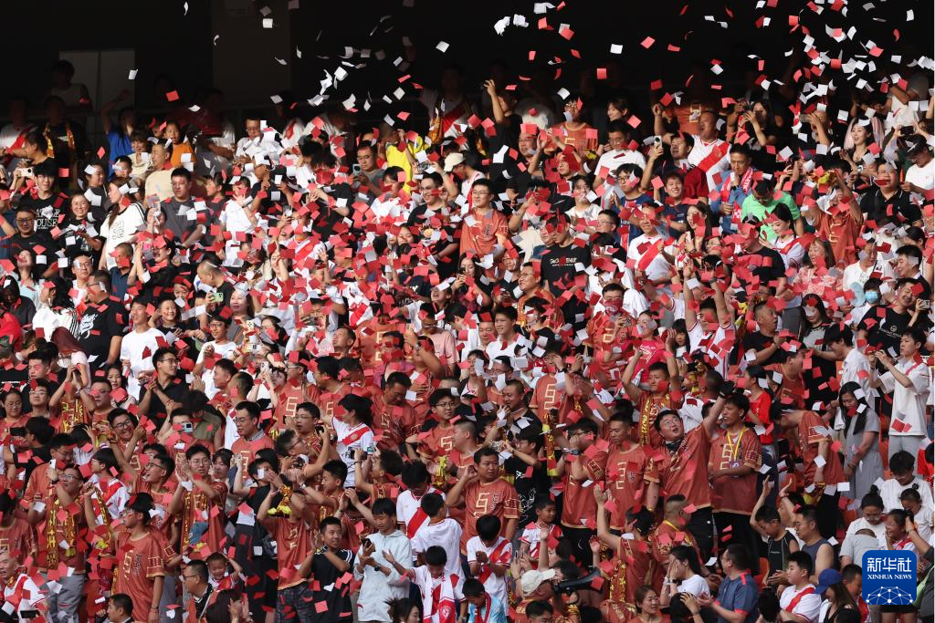 6月28日,球迷在现场为兰州陇原竞技队加油助威。新华社记者 陈斌 摄
