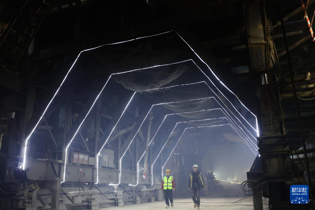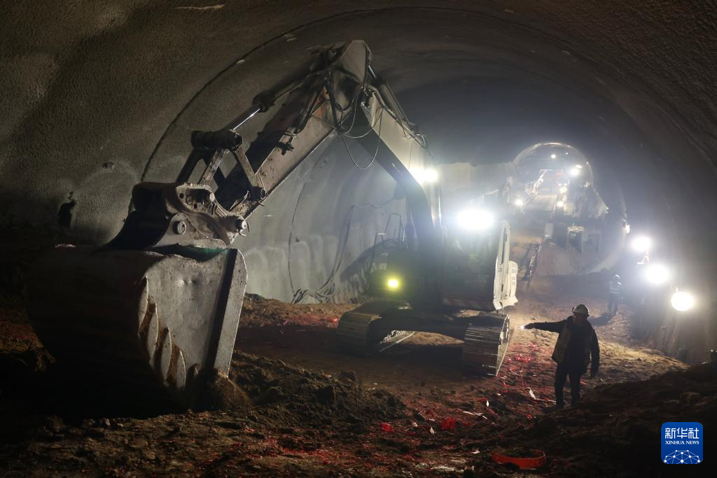 6月29日,工人在已经贯通的西成铁路西科隧道内施工。新华社记者 陈斌 摄